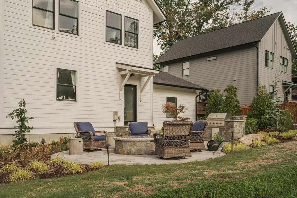 Experts divide patios into “rooms”—a dining zone, lounge area, cooking station, or fire pit circle. Each has its own layout, lighting, and furnishing style, yet all flow together visually.
